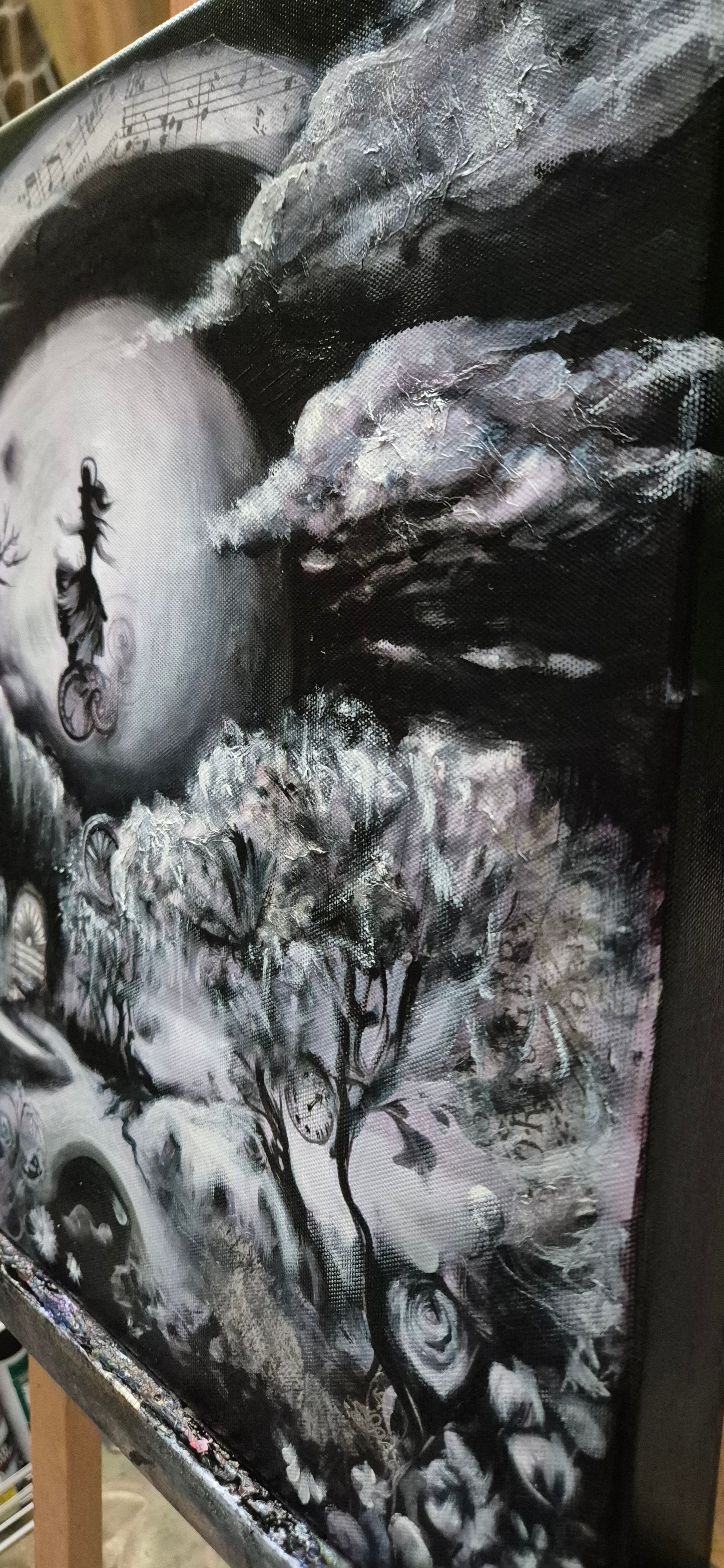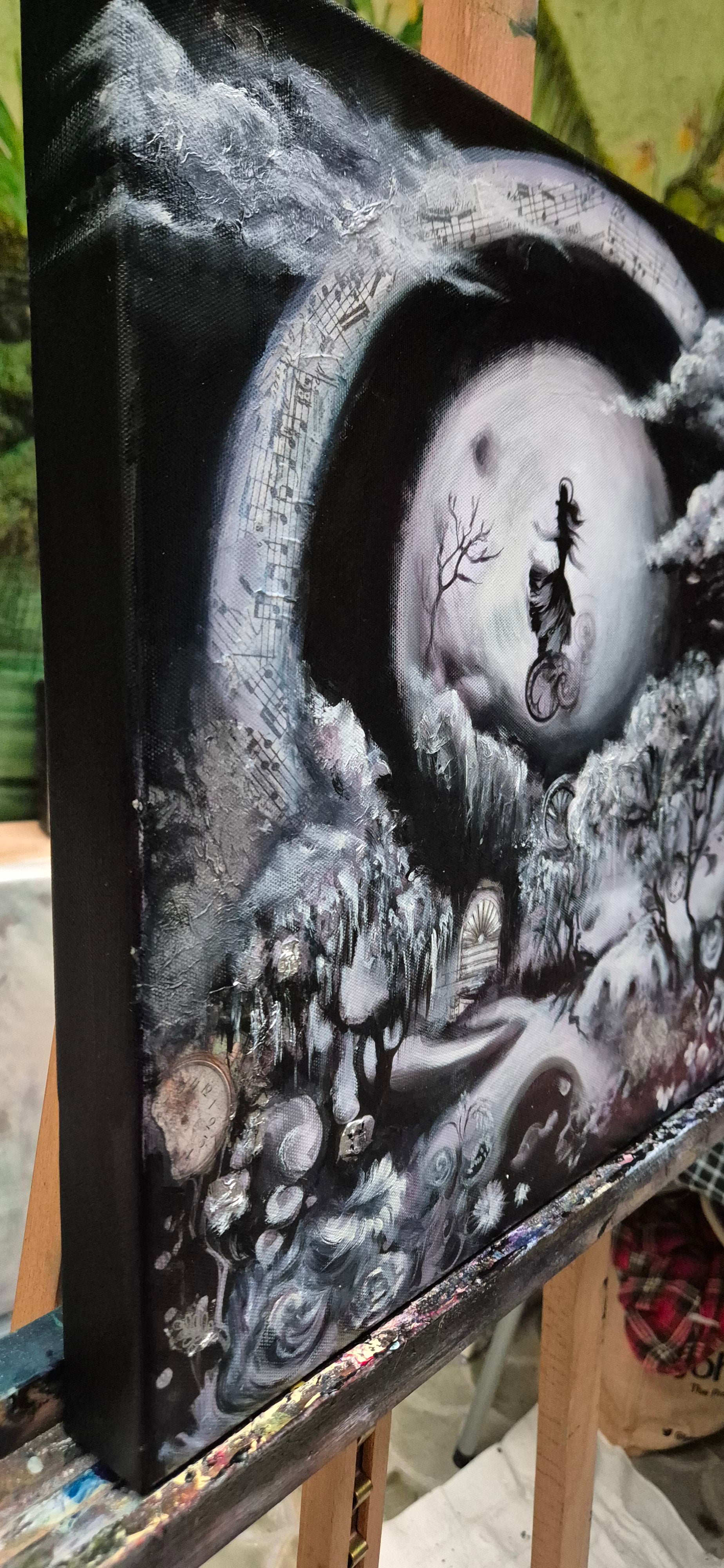 “Full moon in Wonderland” is a part of Midnight in Wonderland abstract series exploring the intricate balance between reality and imagination, and the profound depths of Alice in Wonderland, a cherished childhood favourite.