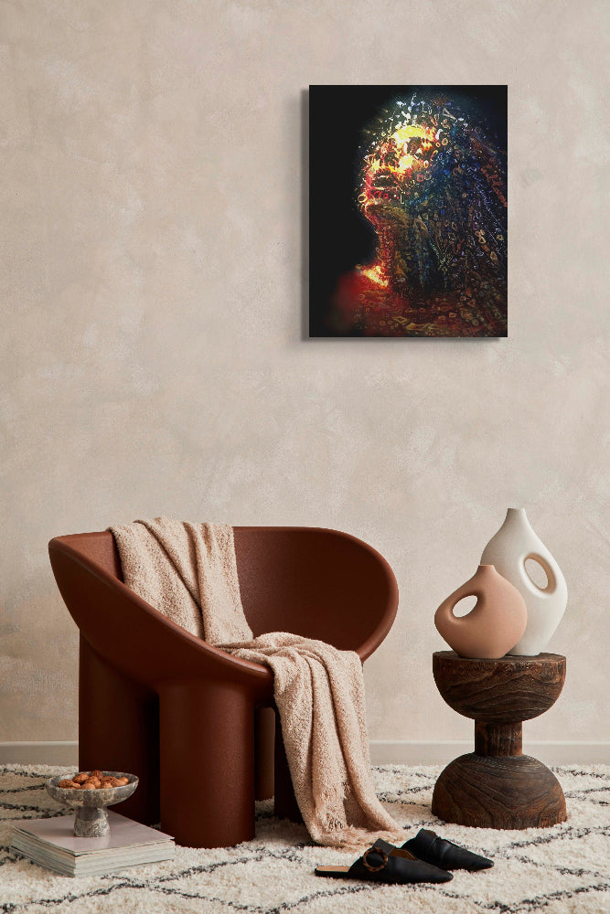 This is an Original 24 by 31 inch mixed media oil painting on a gallery-wrapped canvas. It comes with the wiring on the back and is ready to hang, right out of the box. It comes with the wiring on the back and is ready to be installed on your wall, right out of the box.