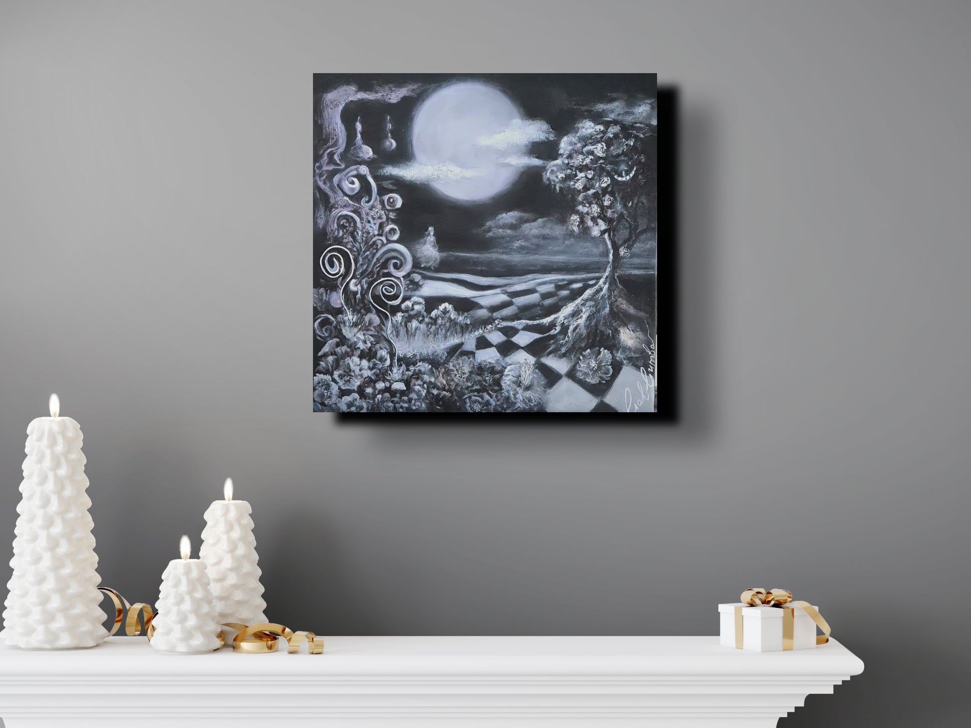 “Somewhere else” is a part of Midnight in Wonderland abstract series inspired by the hidden depths of a cherished childhood favourite -Alice in Wonderland,.