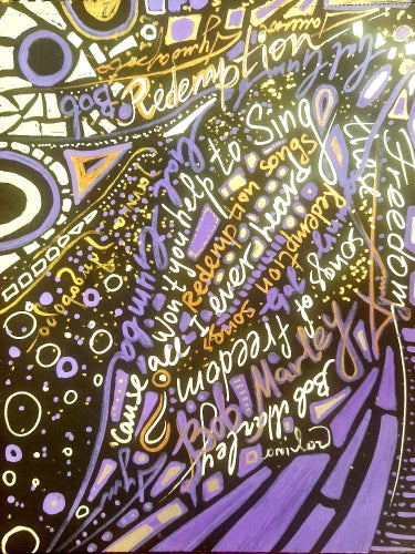 This series of original paintings are in tribute to some of my favourite artists. I like to collage parts of their music notes and lyrics into the paintings.