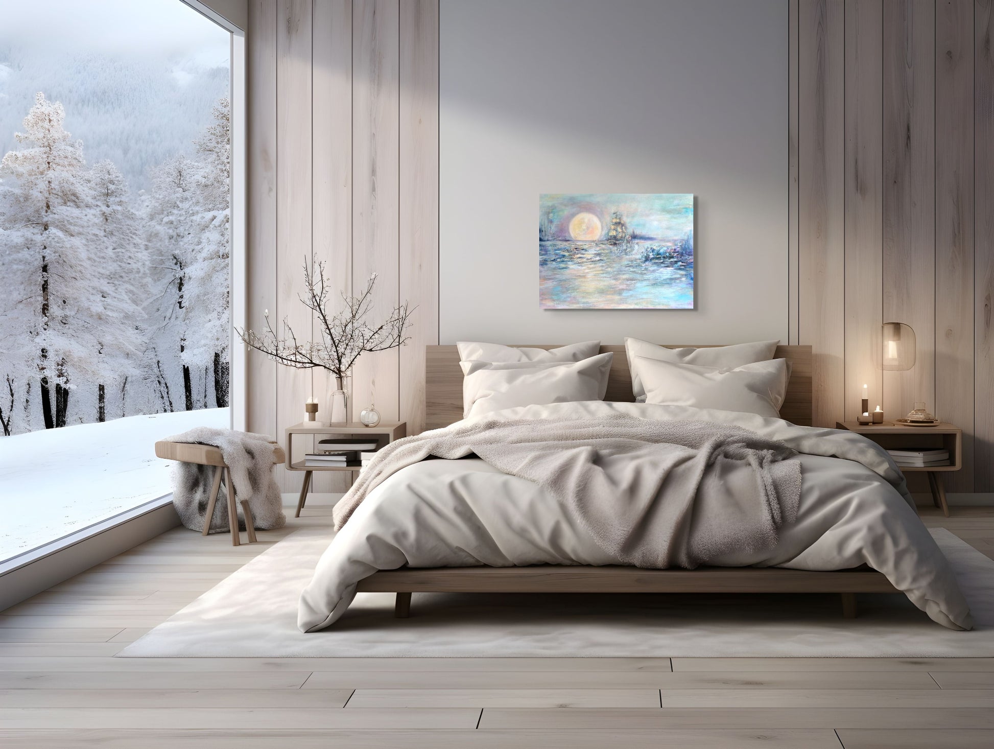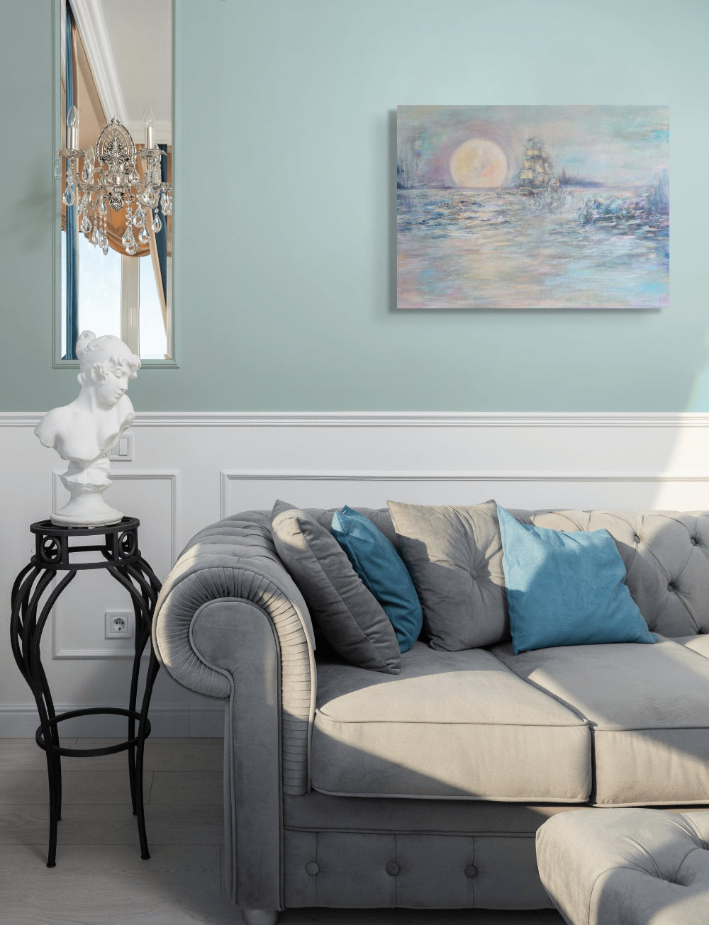 This is an Original 24 by 31 inch mixed media oil painting on a gallery-wrapped canvas. It comes with the wiring on the back and is ready to hang, right out of the box.